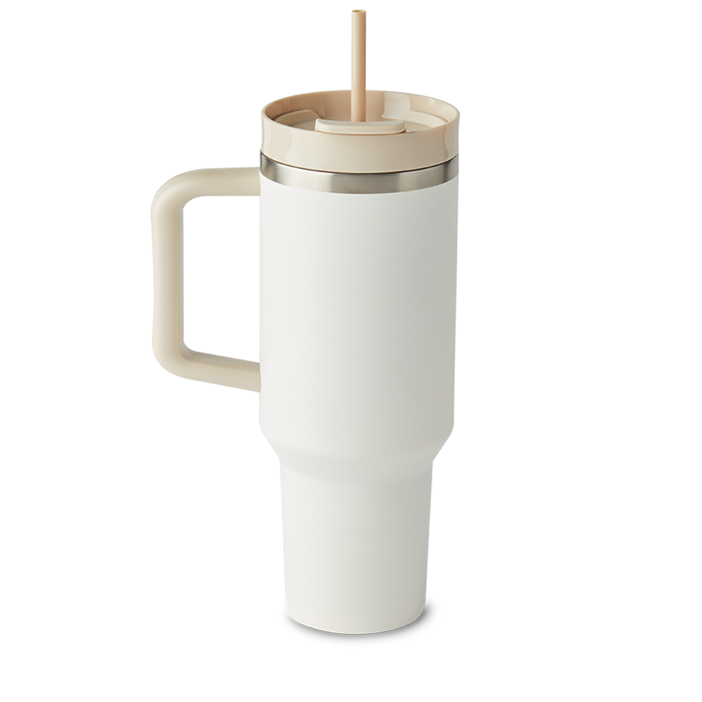 Stay hydrated with our biggest tumbler yet. The Tim Hortons 40oz Stainless Steel Tumbler is vacuum insulated to keep your favourite drinks cold up to 24 hours. The lid has 3 positions for straw. sipping. and closed. Available in multiple colors. Save $0.10 on refills. offer valid in Canada only. Terms apply. Visit restaurant for details.