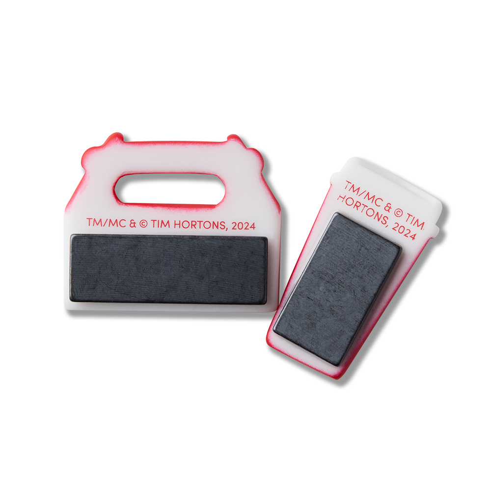 Add this playful. Canadian-inspired set of 2 magnets to your collection. or gift it to the Tims enthusiast in your life!